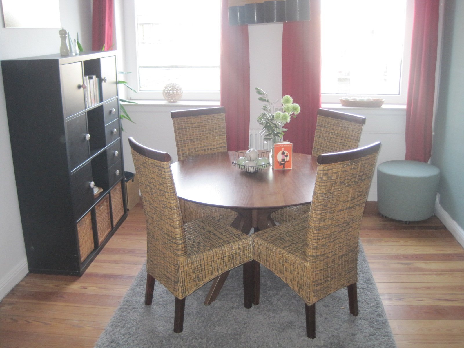 Fernsehsessel bietet ausreichend Platz für gemeinsame Abende. Im Esszimmer befindet sich ein runder Tisch an dem vier Personen Platz finden sowie ein Schrank mit weiterem