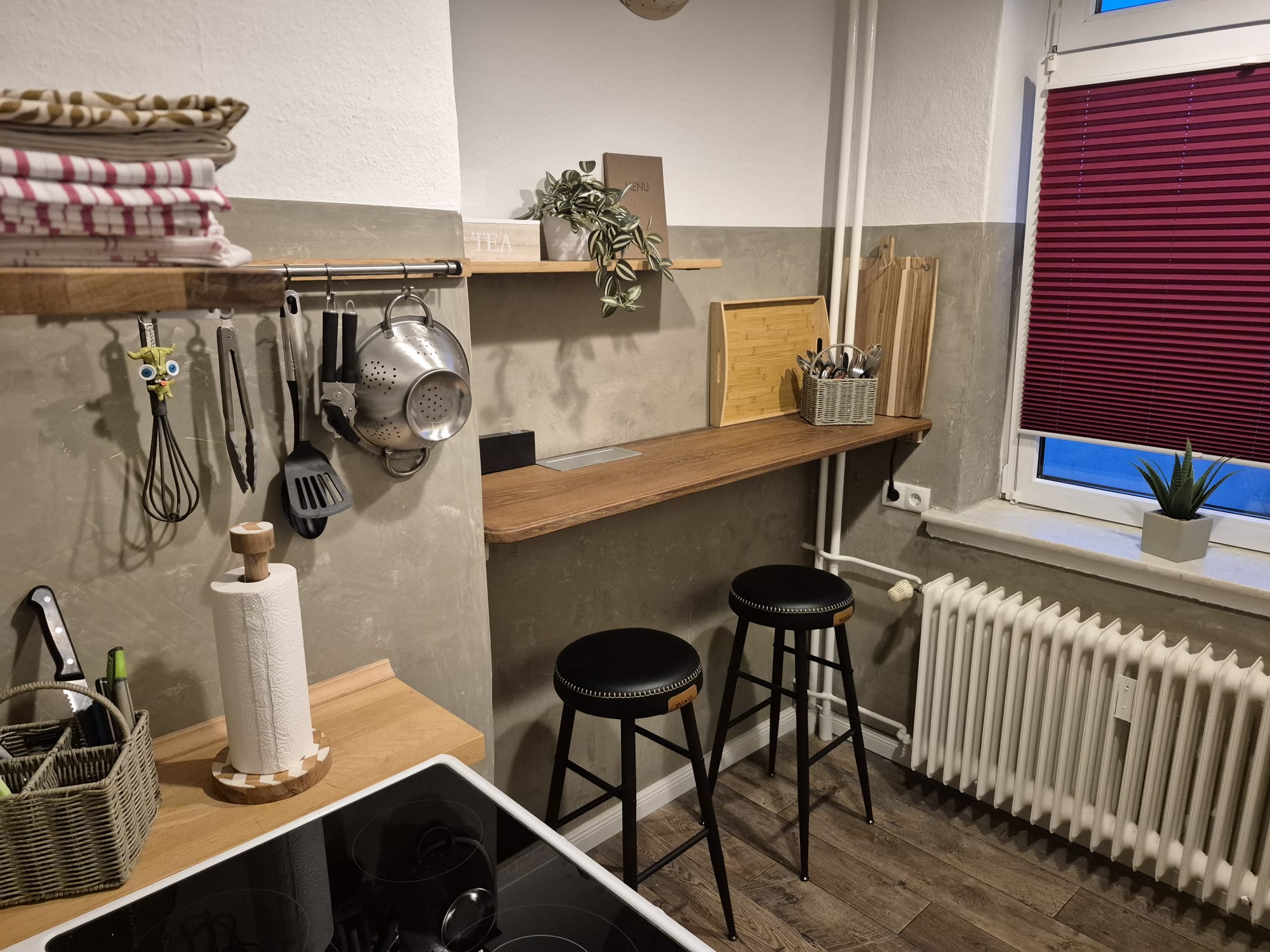 Küche: Die Küche bietet trotz ihrer Größe Platz für zwei zusätzliche Essplätze
